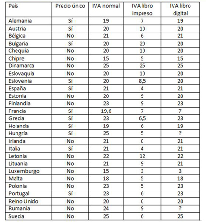 - Sólo Francia y Luxemburgo aplican el mismo IVA reducido al libro impreso y al libro digital, medida adoptada en 2012.